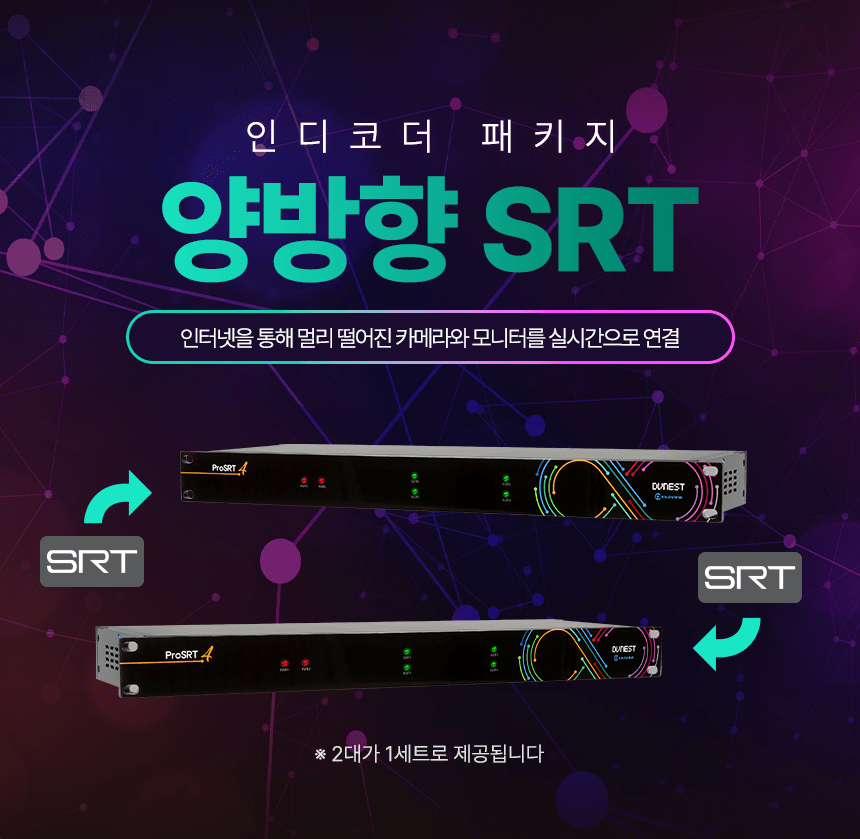 (주)디브이네스트, 인터넷망을 전용선처럼 사용하는 ‘ProSRT 양방향 패키지’ 출시 고가의 전용선 없이 공용 인터넷망으로 고화질, 초저지연 양방향 영상 전송 구현 – 복잡한 네트워크 설정 없이 즉시 사용 가능한 인코더/디코더 패키지 구성 방송장비 전문업체인 (주)디브이네스트(대표 이광희)는 공용 인터넷망을 통해 안정적인 고화질 영상 전송을 지원하는 ‘ProSRT 양방향 패키지’를 공식 출시했습니다. 이번에 선보인 ‘ProSRT 양방향 패키지’는 영상을 인터넷 전송용…