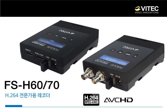 전문가를 위한 H.264 프로용 레코더인 H60, H70은 고성능 인코딩 하드웨어 칩셋을 사용한 독립형 H.264 레코더로 뛰어난 화질과 적은 용량의 전문 H.264 레코딩을 장시간 안정적으로 처리할 수 있습니다.