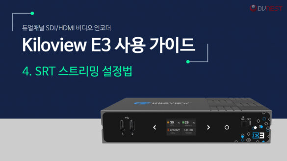 Kiloview E3 사용 가이드 4 – SRT 스트리밍 설정법 2024년 6월 5일, DVNEST E3 인코더의 SRT 스트리밍 설정법을 알아보겠습니다. 스트리밍 설정 전, 비디오와 오디오 인코딩 파라미터를 설정합니다. 테스트를 위해 위와 같이 H.264 코덱 / 60 fps / CBR 모드 / 10Mbps 설정으로 지정하였습니다. 해당 인코딩 설정은 사용자 요구 사항에 따라 수정할 수 있습니다. 오디오 인코딩…