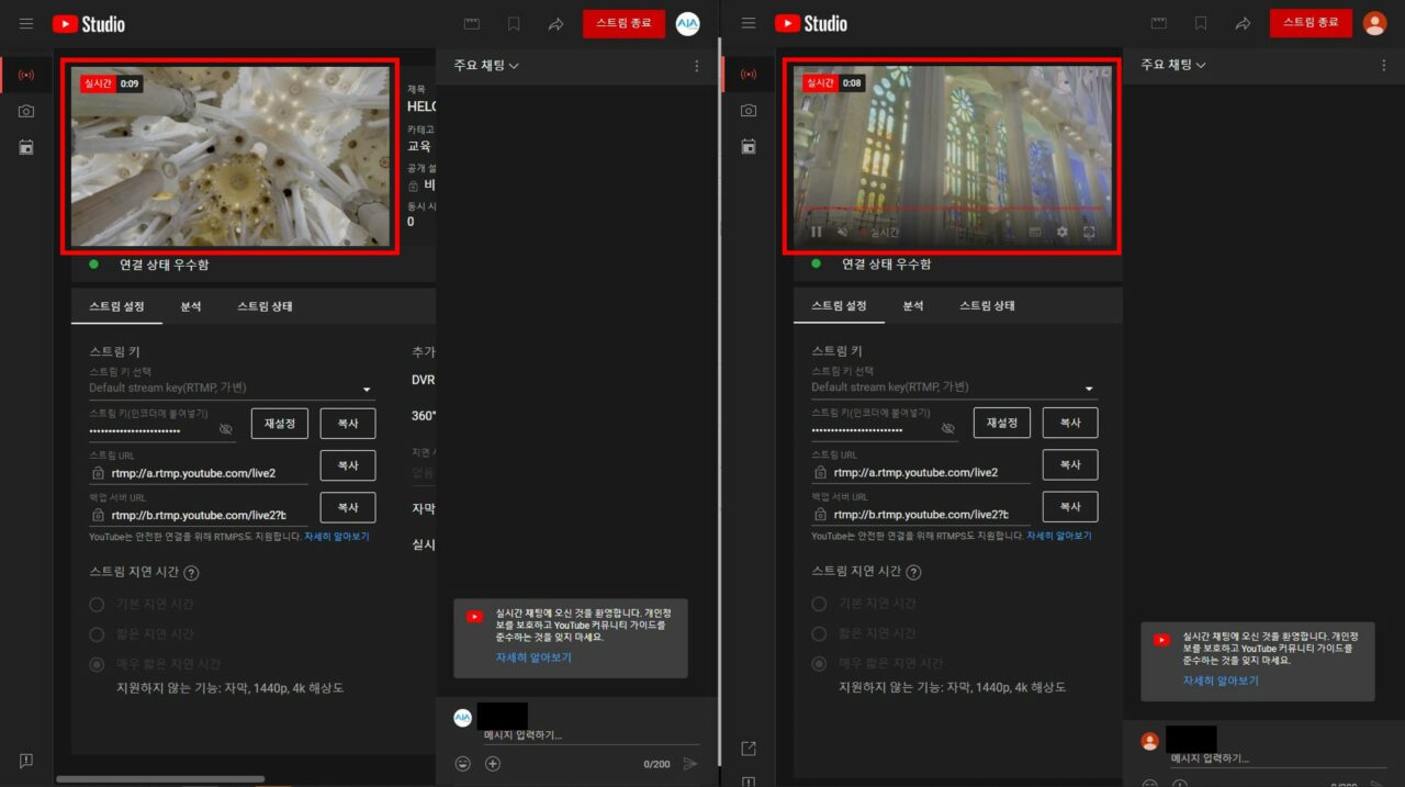 실시간 스트리밍이 각각의 채널에서 활성화 되면 성공