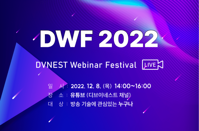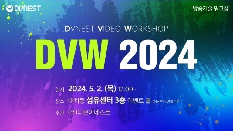 디브이네스트, ‘DVW 2025’ 성공적 개최 (주)디브이네스트는 지난 11월 26일 대치동 섬유센터 Tex+Fa홀에서 개최된 DVW2025 (DVNEST VEDIO WORKSHOP)를 성공적으로 개최하였습니다. 디브이네스트의 대표적인 방송기술 워크샵인 DVW는 2009년을 시작으로 올해 16년을 맞이하였으며 이번 DVW2025에는 16개의 장비 전시 업체와 400여명의 참관객들이 현장에 참석하여 큰 관심을 모았습니다. 이번 DVW2025 웰컴 토크에는 디브이네스트 이광희 대표의 한 해 동안의 주요 방송 기술…