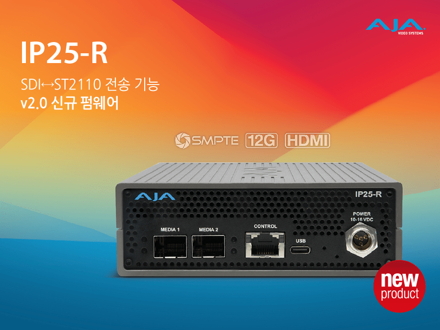 IP25-R은 SMPTE ST 2110 신호를 12G-SDI 및 HDMI 2.0으로 변환하여 IP 제작 환경의 유연성을 극대화합니다. 25GbE SFP 연결을 통해 최대 4K 60p의 고해상도 영상을 지연 없이 전송하며, ST 2022-7 이중화 지원으로 방송 사고를 철저히 방지합니다. 콤팩트한 설계 덕분에 현장 투입은 물론, 랙 프레임 사용 시 1RU 공간에 3대까지 설치할 수 있어 공간 효율성까지 잡았습니다.