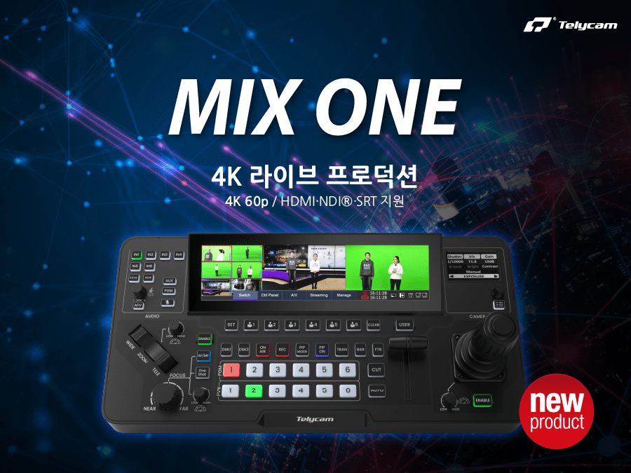 MIX ONE은 4K 비디오 스위처와 PTZ 카메라 컨트롤러, 인코더, 모니터 기능을 단 하나의 장비에 통합한 혁신적인 솔루션입니다. 최대 6개의 입력을 지원하며 NDI HX3, SRT, RTSP 등 최신 IP 프로토콜은 물론 HDMI 2.0과 USB-C 연결까지 완벽하게 소화합니다. 별도의 복잡한 장비 구성 없이 MIX ONE 하나만으로도 방송급 라이브 스트리밍과 녹화가 가능해져 제작 효율성을 높였습니다.