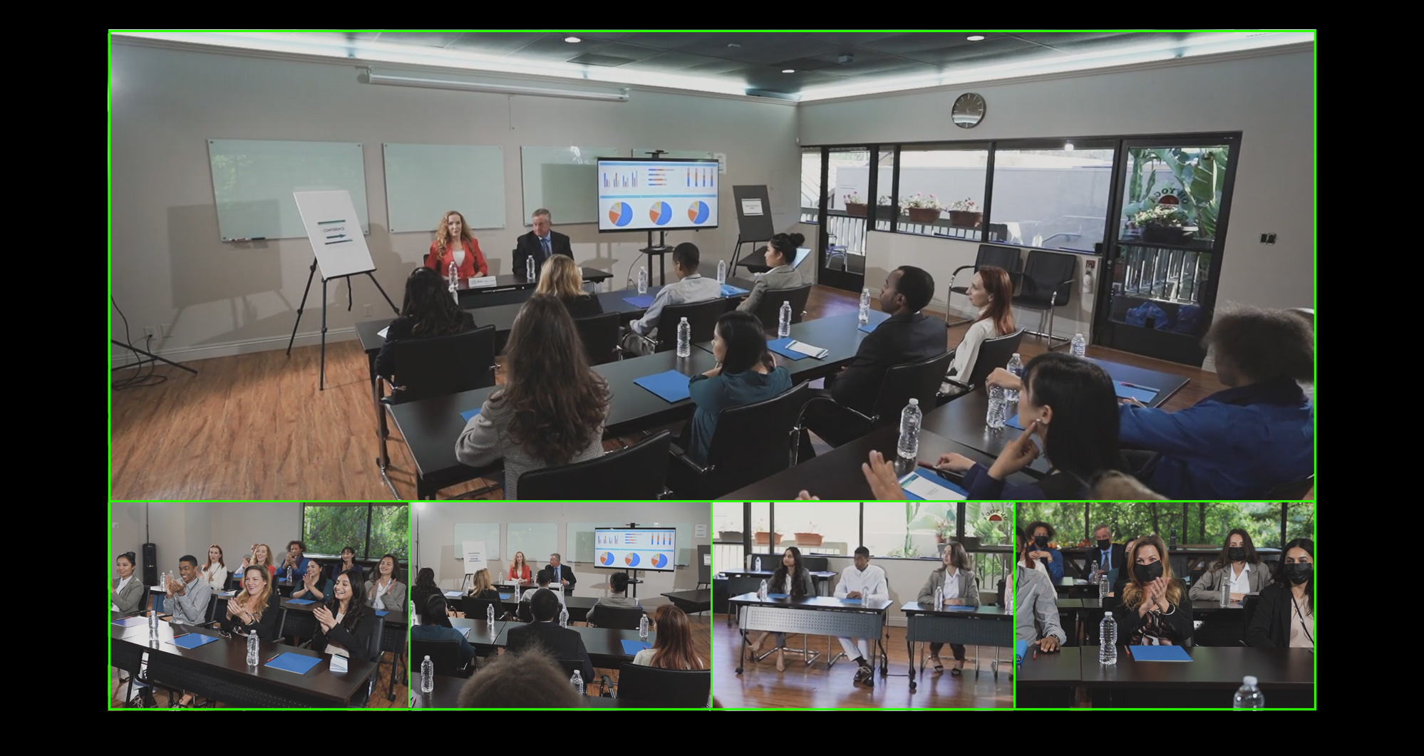 비즈니스 미팅에서 R5PRO는 다중 카메라 전환 기능을 지원합니다. PTZ 카메라 각도는 조이스틱으로 제어 및 사전 설정할 수 있습니다. 한 대의 카메라는 클로즈업 촬영, 다른 한 대는 광각 촬영으로 설정할 수 있으며, 추가 컴퓨터는 PPT 프레젠테이션에 사용할 수 있습니다. PIP 기능은 비즈니스 프레젠테이션의 시각적 경험을 향상시키는 데에도 활용할 수 있습니다.