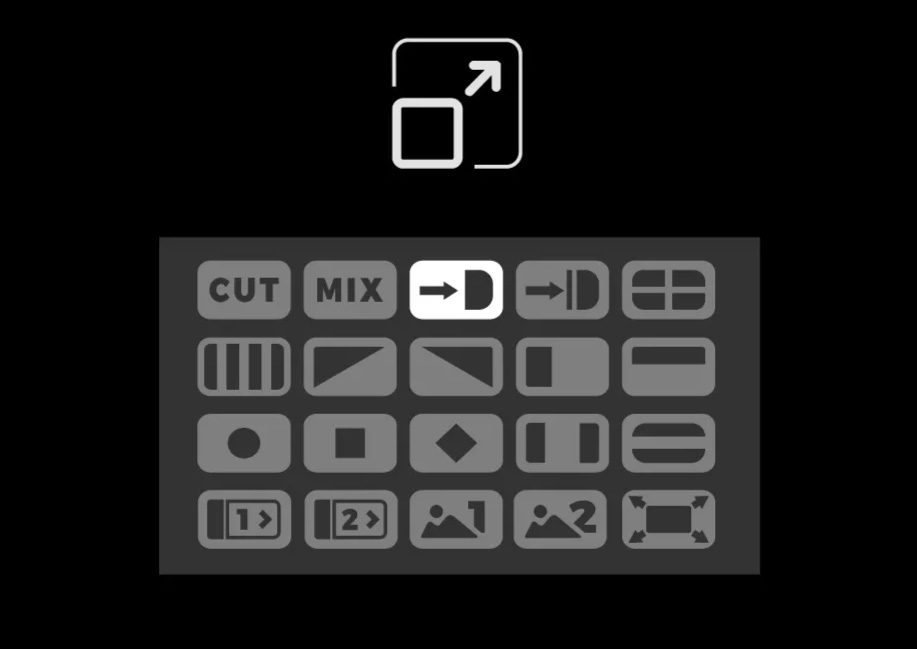 R5PRO는 FADE를 포함한 다양한 전환 효과를 제공합니다. WIPE, DIP, DVE 효과를 사용할 수 있습니다. 또한 지속 시간 버튼을 통해 다양한 장면 간의 부드럽고 매끄러운 트랜지션 효과를 0.5초, 1초 또는 1.5초로 설정 할 수 있습니다.