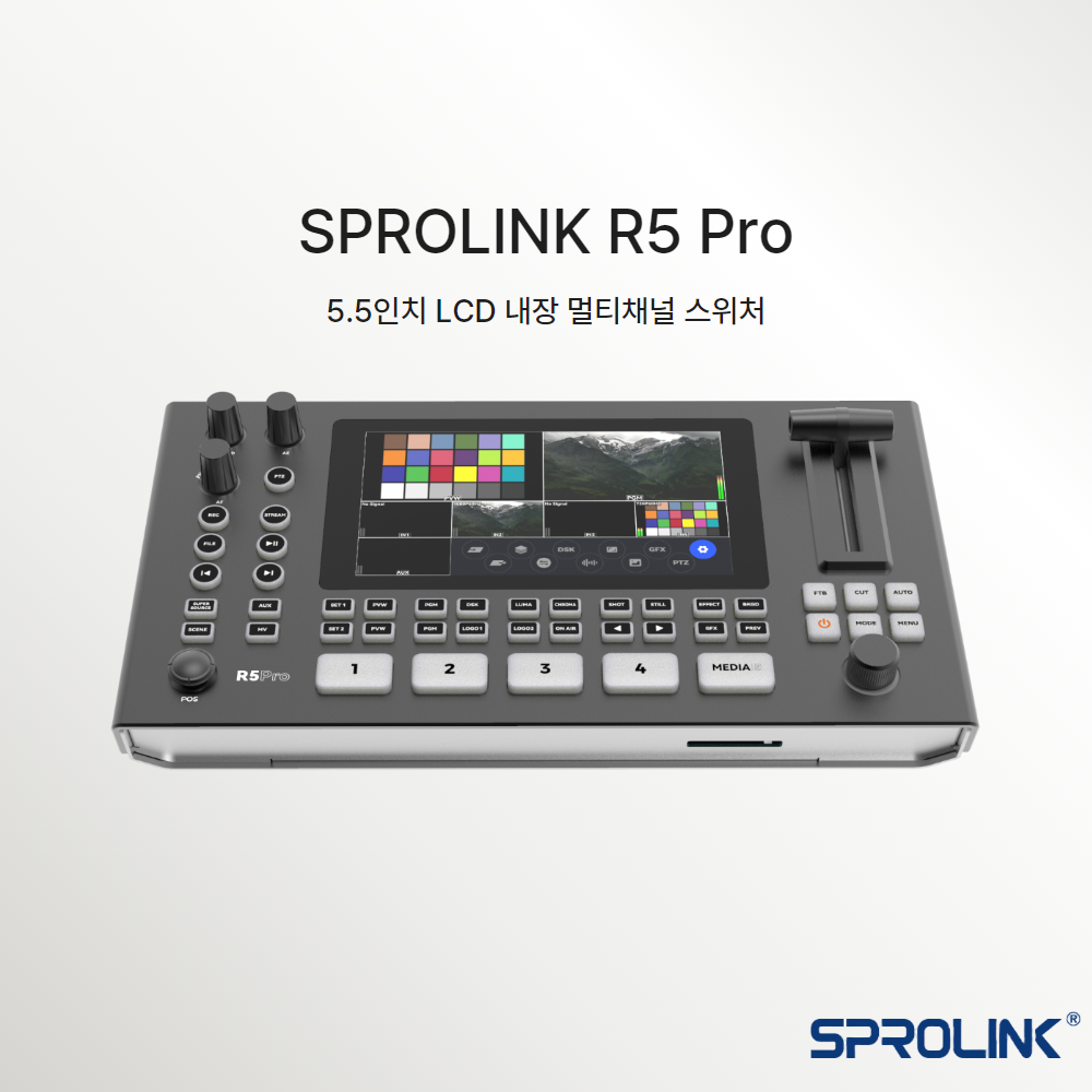 R5PRO는 완전히 새롭게 디자인으로 업데이트 된 다기능 방송 스위처입니다. 다양한 분야에서 활용 가능한 이 혁신적인 장치는 내장 5.5인치 스크린을 제공하며, 간편하게 가로 및 세로 방송을 진행할 수 있습니다.