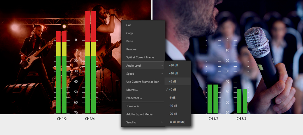 비디오를 사용하는 경우 클립 별로 오디오 레벨이 달라서 항상 문제가 발생하기 마련입니다. TriCaster® 는 영상 클립의 속성에서 독립적으로 오디오 레벨을 조정할 수 있기 때문에 항상 일정한 수준의 오디오 출력을 유지할 수 있습니다. 더 이상 라이브 도중 깜짝 놀라는 일은 없을 것입니다.