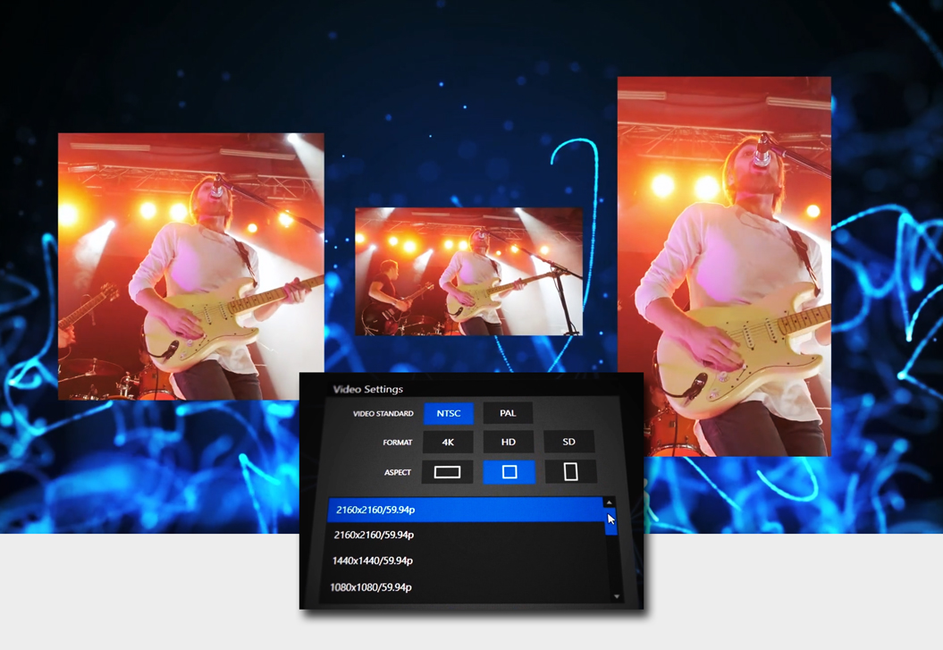SD부터 4K까지 원하는 해상도를 선택해서 작업하실 수 있습니다. 또한 TriCaster® 1 Pro는 가로방송 뿐만 아니라 세로 방송과 1:1 화면비율의 스퀘어 방송까지 가능합니다. 이제 원하는 스타일의 방송 포맷을 선택하기만 하면 플랫폼에 최적화된 방송을 별도의 변환과정 없이 곧바로 라이브 스트리밍이 가능해집니다.