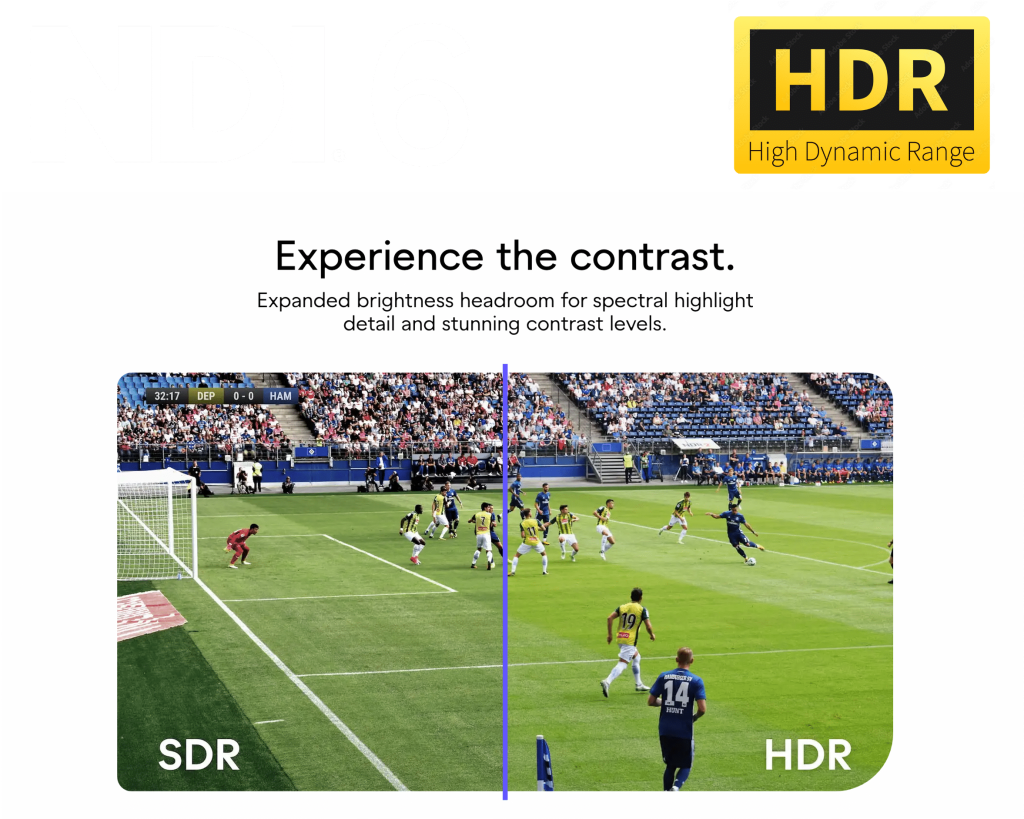 NDI 6에 대한 지원이 Viz Engine 5.3에 추가되었으며 입력 및 출력에서 HDR HLG 워크플로에 대한 지원이 포함됩니다.