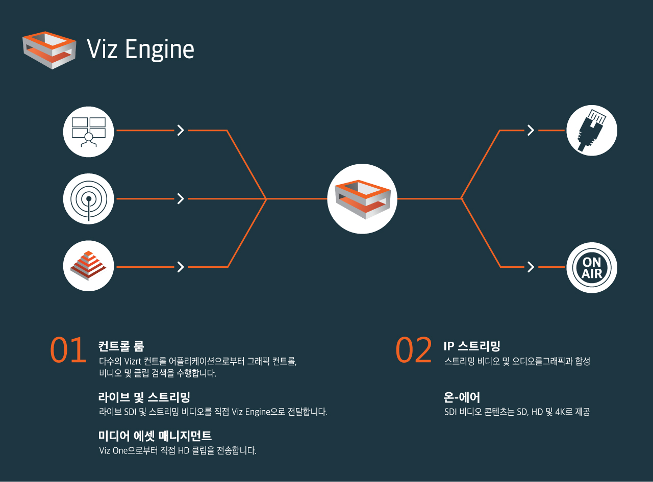 오늘날 변화하는 미디어 환경에서 그 성능을 입증한 최신 버전의 Viz Engine 5는 차세대 그래픽 혁신을 향한 출발점 역할을 합니다.