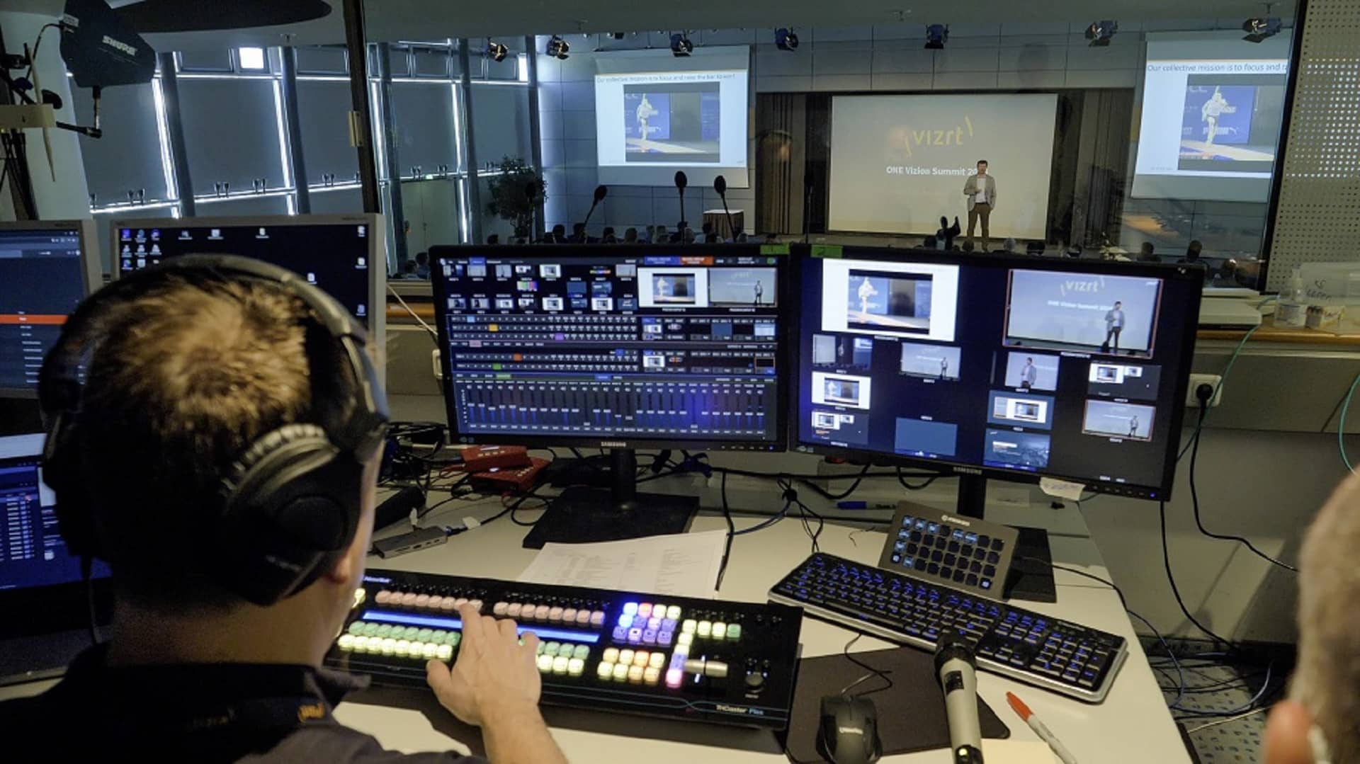AR 통합을 통해 관객에게 몰입감 넘치는 경험을 제공했습니다. - TriCaster® 2 Elite는 하이브리드 이벤트 제작의 핵심 구성 요소였습니다. 여러 수상 경력에 빛나는 이 미디어 제작 시스템은 여러 대의 카메라에서 전송되는 비디오 피드와 실시간 비디오 간의 전환, 스트리밍 과 VOD 제작을 위한 세션 녹화를 관리했습니다. Viz Flowics의 그래픽과 Microsoft Teams를 통한 원격 발표자도 시스템에 통합되었습니다.